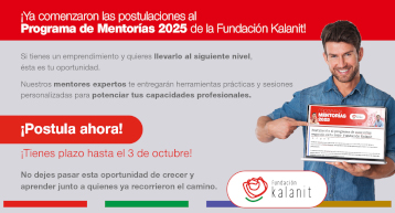 ¡Ya comenzaron las postulaciones al Programa de Mentorías 2025 de la Fundación Kalanit! Si tienes un emprendimiento y quieres llevarlo al siguiente nivel, esta es tu oportunidad Nuestros mentores expertos te entregarán herramientas prácticas y sesiones personalizadas para potenciar tus capacidades profesionales. No dejes pasar esta oportunidad de crecer y aprender junto a quienes ya recorrieron el camino